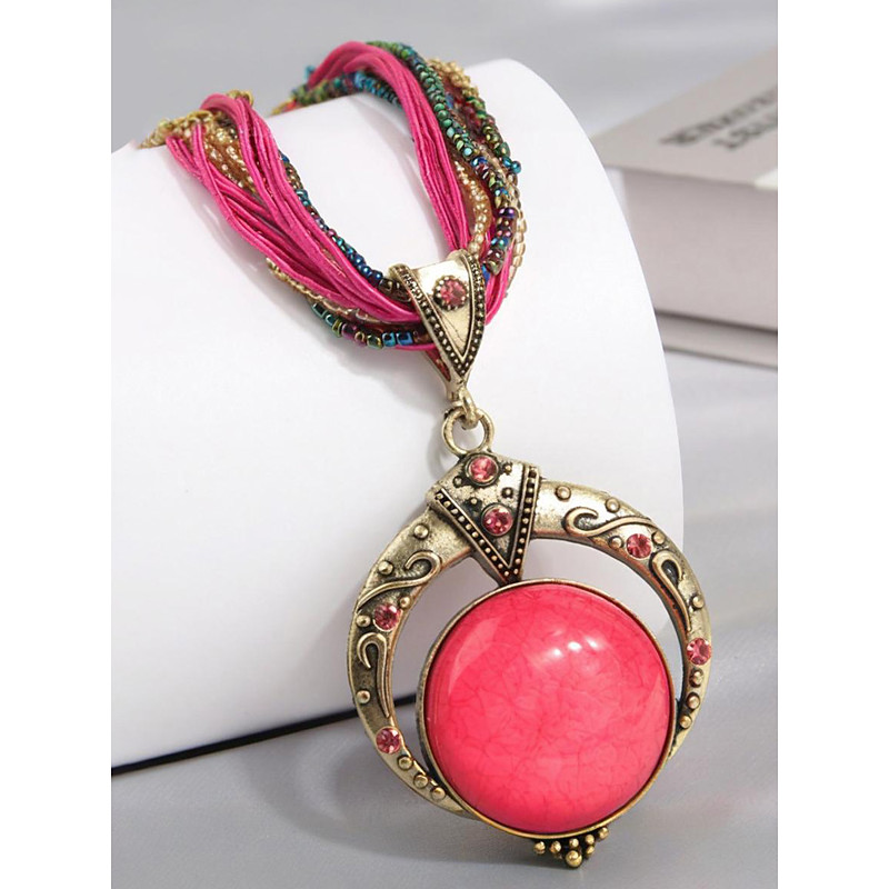 Women's Bohemian Alloy Necklace with Multi-Colored Beaded Rope, Unique Pendant Design, Perfect for Casual and Festival Wear