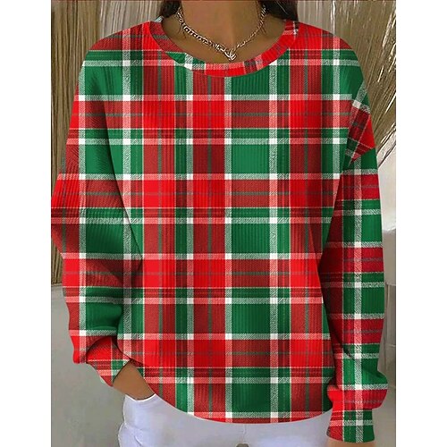 Per donna Felpa Pullover Grafico Plaid Elegante Vintage Classico Manica Lunga Girocollo Top Regolari Casa Streetwear Abbigliamento Quotidiano Stampato Blu Rosa Rosso Arancione Verde Primavera Autunno