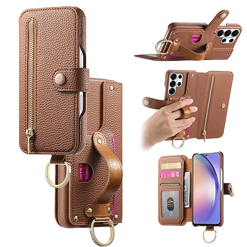 Handy Hülle Handyhüllen Für Samsung Galaxy S26 Ultra Plus S25 S24 S23 S24 FE S22 S21 Ultra Plus S20 A55 5G A35 5G Flip-Cover Mit Ständer Magnetisch Mit Handgelenkschlaufe Retro TPU PU-Leder
