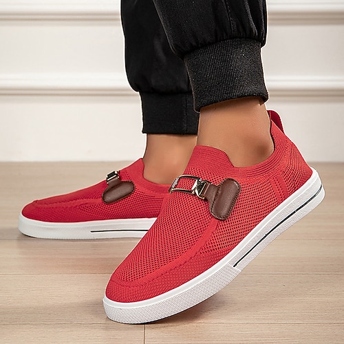 Sneakers da uomo traspiranti con stampa tribale, slip-on e suola in gomma – scarpe leggere in mesh Flyknit per attività casual all'aperto