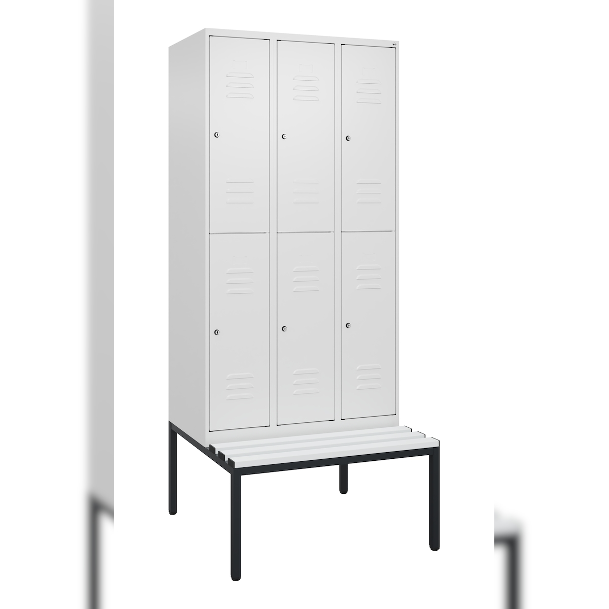 C+P Spind Classic PLUS, Kunststoff untergebaute Sitzbank, 6 Abteile, HxBxT 212x90x82cm, Zylinderschloss, Verkehrsweiß von PROREGAL