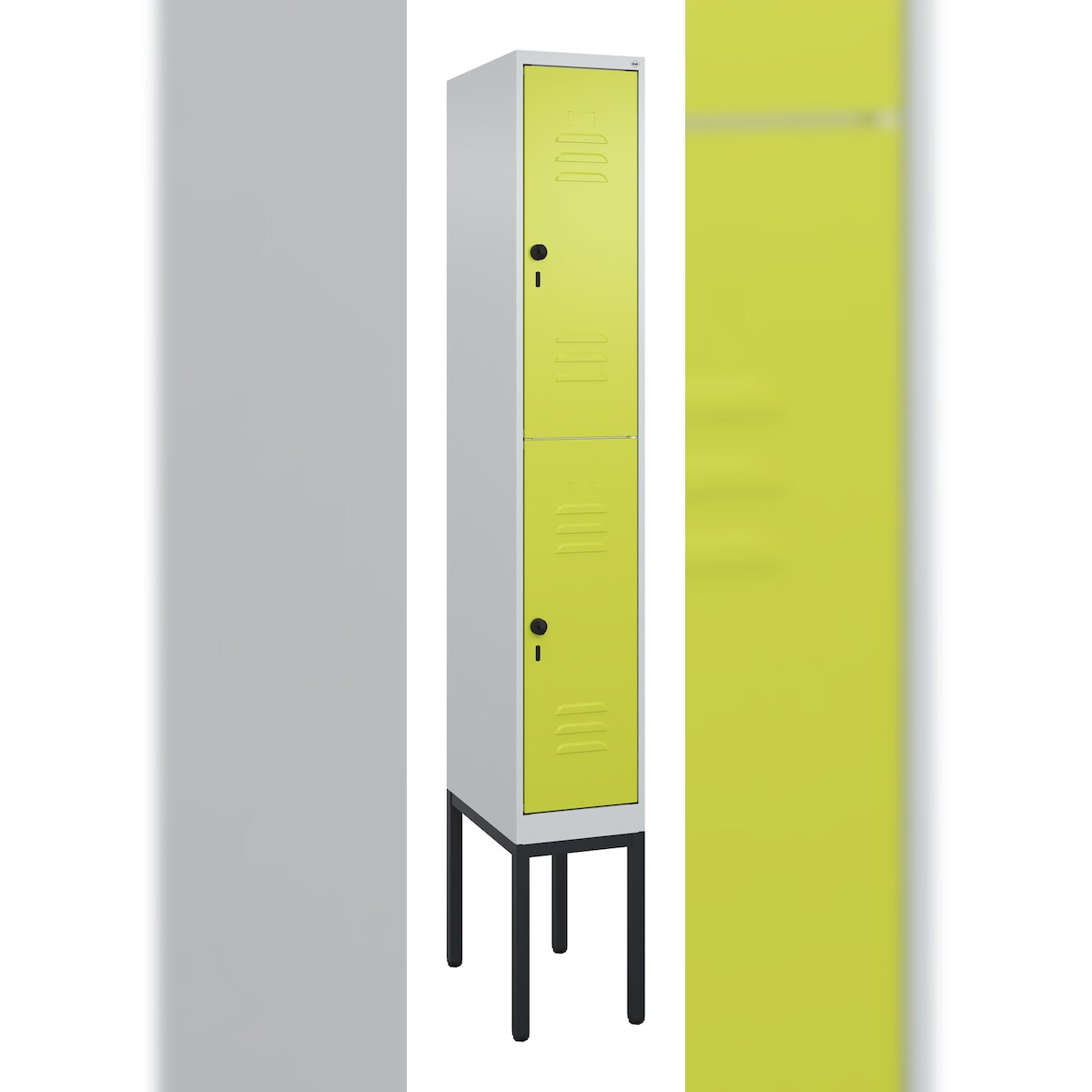 C+P Spind Classic PLUS, Gestell, 2 Abteile, HxBxT 212x30x50cm, Sicherheitsdrehriegel, Hellgrau/Clowngrün von PROREGAL