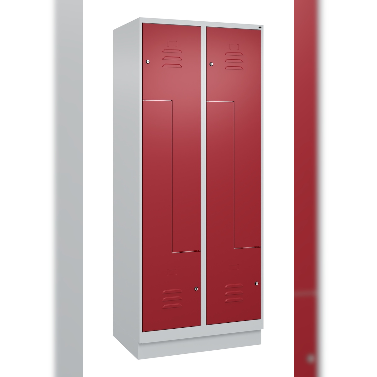 C+P Z-Spind Classic PLUS, Sockel, 4 Abteile, HxBxT 195x80x50cm, Zylinderschloss, Hellgrau/Rubinrot von PROREGAL