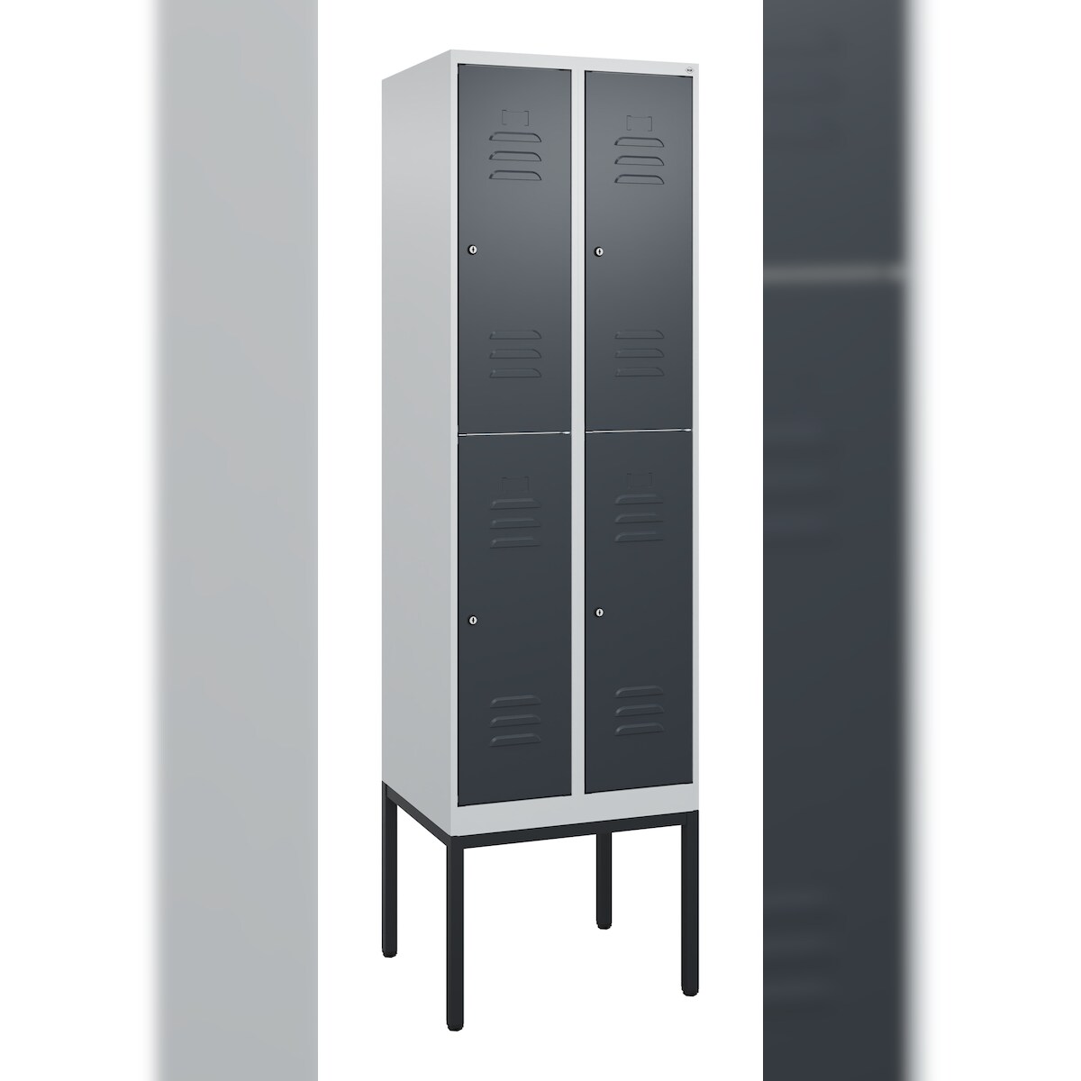 C+P Z-Spind Classic PLUS bodenstehend, 4 Abteile, HxBxT 185x60x50cm, Zylinderschloss, Anthrazit/Hellgrau von PROREGAL