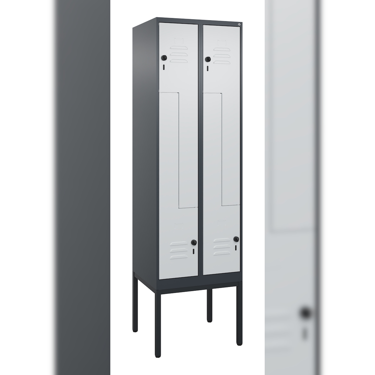 C+P Z-Spind Classic PLUS, Gestell, 4 Abteile, HxBxT 212x60x50cm, Sicherheitsdrehriegel, Anthrazit/Hellgrau von PROREGAL