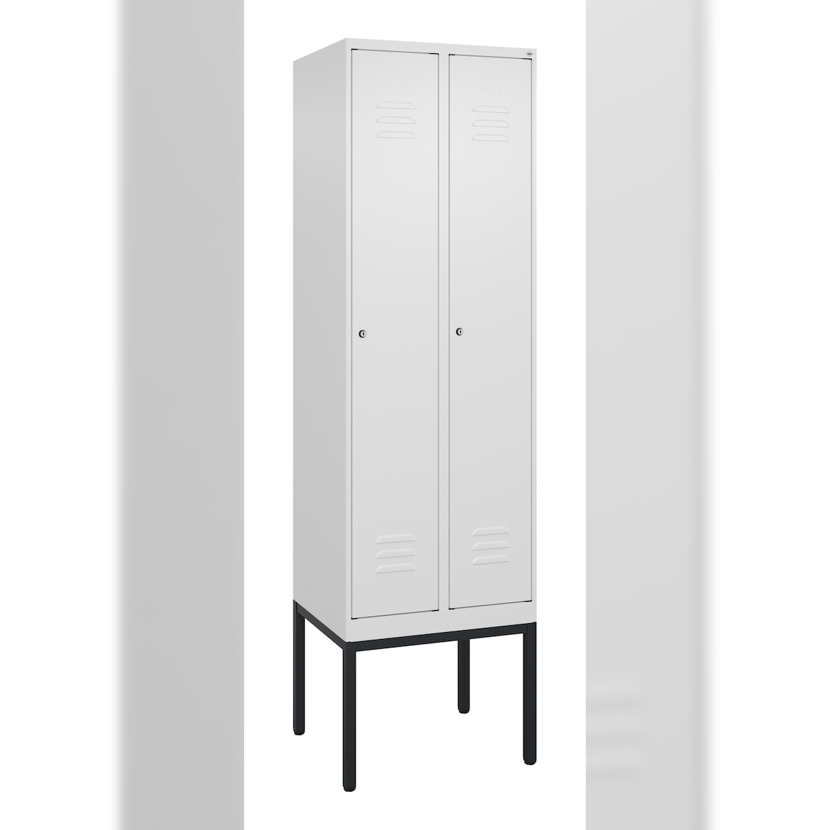 C+P Spind Classic PLUS, Sockel, 2 Abteile, HxBxT 195x60x50cm, Sicherheitsdrehriegel, Hellgrau/Hellgrau von PROREGAL