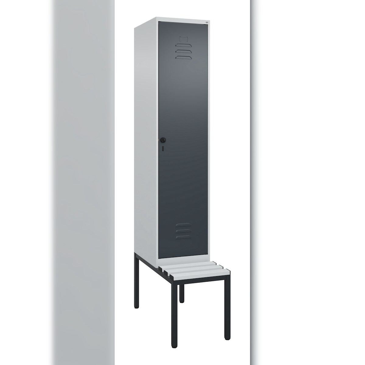 C+P Spind Classic PLUS, Kunststoff untergebaute Sitzbank, 1 Abteil, HxBxT 212x40x82cm, Sicherheitsdrehriegel, Hellgrau/Anthrazit von PROREGAL