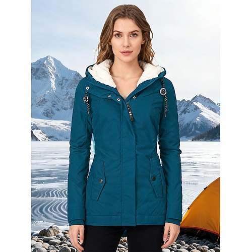 Damen Farbblock Warm Teddy Fuzzy Langarm Kapuzenpullover Lange Oberteile Strasse Casual Knopf Tasche Schwarz Rosa Wein Blau Grün Herbst Winter