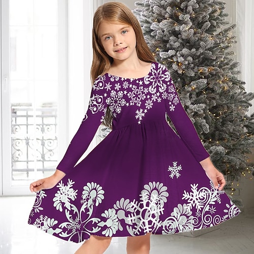 Bambino Da ragazza Vestito di Natale Vestito Abito fiocco di neve Fiocco di neve Manica lunga Informale Girocollo Adorabile Poliestere Sopra il ginocchio Abito casual Vestito svasato Abito linea A