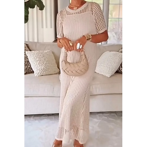 Per donna Insieme del vestito Vestito Estivo Abito a Tubino Vestito in Tulle Elegante Casual Semplice Traforato Abito Midi Manica Corta Girocollo All'aperto Spiaggia Bianco Blu marino Viola Estate