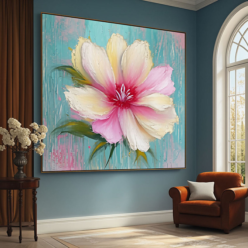 Hand Painted Pink Flower Oil Painting Style Canvas Wall Art Wall Hanging Living Room Decor Modern Design Floral Art
