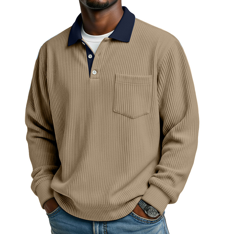 Men's Corduroy Shirt Textured Casual Business Lapel Classic Long Sleeve Vintage Fashion Color Block Pocket Warm Fall Winter Fall Winter Regular Fit Black White Light Green Gray Wine Light Blue