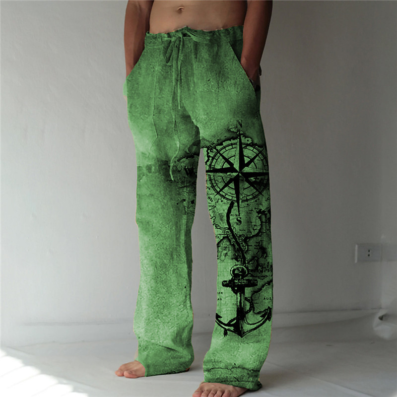 Men's Trousers Summer Pants Beach Pants Drawstring Elastic Waist 3D Print Graphic Prints Anchor Comfort Casual Daily Holiday Streetwear Hawaiian Blue Green