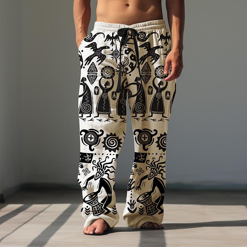 Men's Print Casual Pants Mid Waist Hawaiian Ethnic Style Holiday Straight Leg Summer Spring 3D Print Black Brown Green