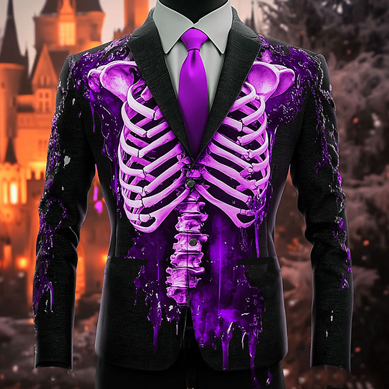 Halloween Men's Skeleton Blazer Jacket Casual Dark Festival 3D Print Spring Fall Winter Notch Long Sleeve Red Orange Green