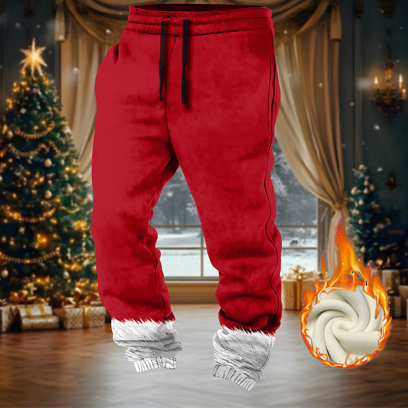 Christmas Men's Solid Color Fleece Sweatpants Drawstring Elastic Waist Casual Outdoor Home Party Evening Wear Pocket Thermal Winter 3D Print Red