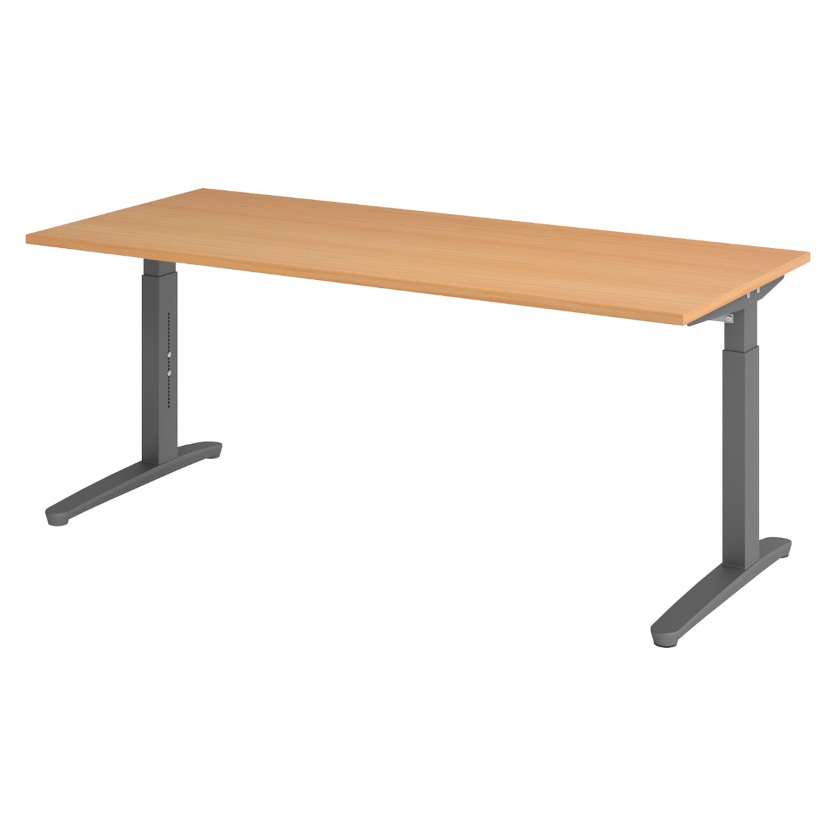 bümö manuell höhenverstellbarer Schreibtisch 180x80 in Buche, Gestell in graphit - PC Tisch höhenverstellbar & groß, höhenverstellbarer Tisch Büro,