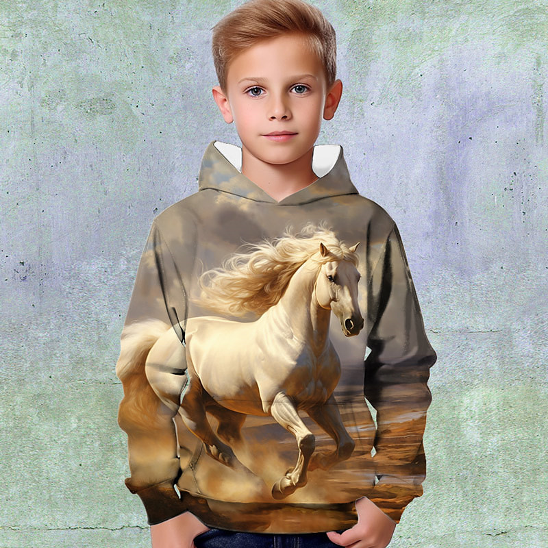 Boys 3D Animal Horse Hoodie Long Sleeve 3D Print Fall Winter Active Sports Fashion Kids 3-13 Years Outdoor Daily Indoor Regular Fit