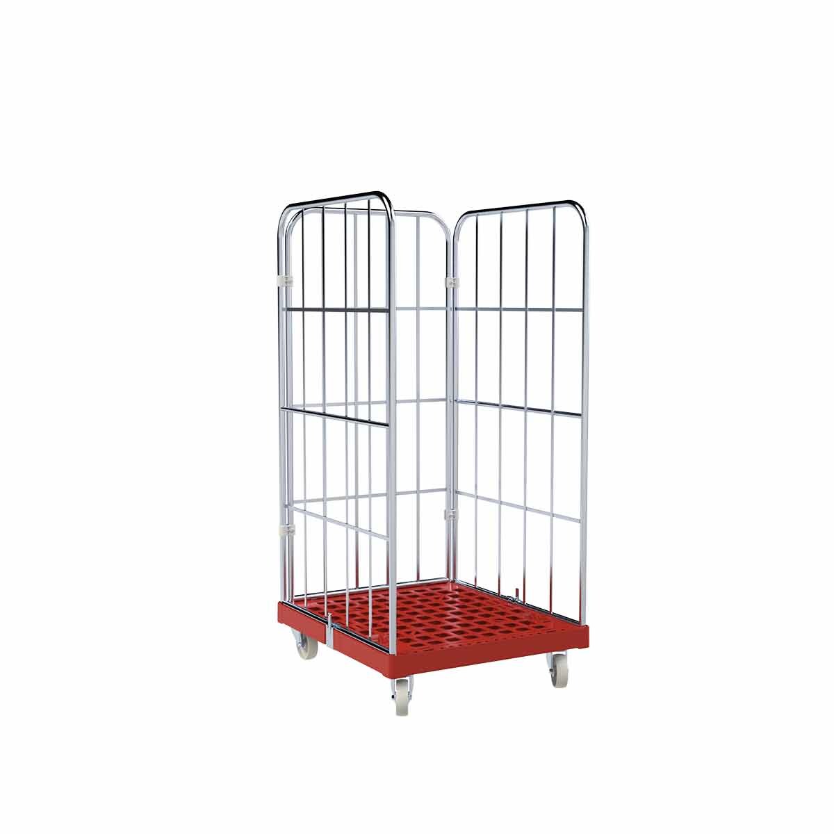 Oswald Transportgeräte Rollbehälter 3-seitig, Rollplatte aus Kunststoff, 724 x 815 x 1.530 mm, 500 kg, Nutzhöhe 1.340 mm, Feuerrot