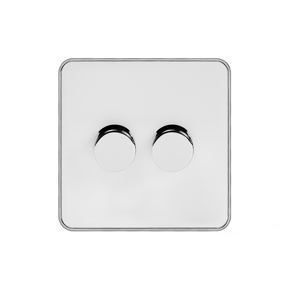 Soho Lighting White & Polished Chrome With Chrome Edge 2 Gang 2 -Way Intelligent Dimmer 150W LED (300W Halogen/Incandescent) - Size: 90mm x 90mm