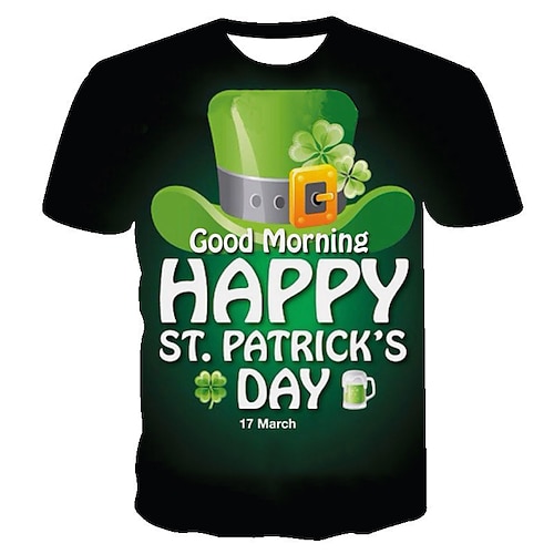 San Patrizio Per uomo Trifoglio Irlandese fortunato Maglietta Manica Corta maglietta Stampa 3D Girocollo Camicia Designer Casual Feste Ferie Club Nero Verde Grigio Estate Primavera Abbigliamento S M