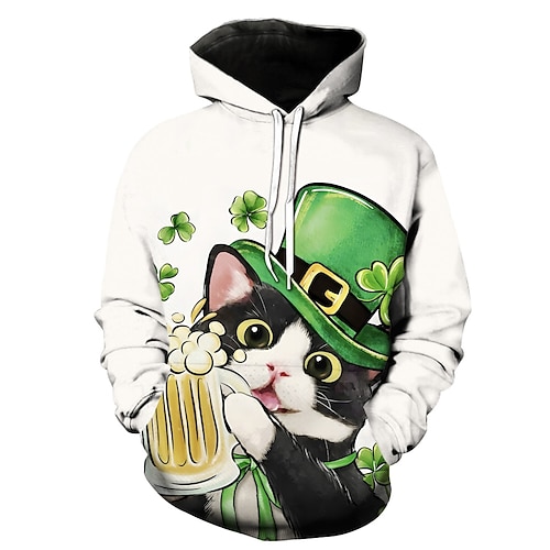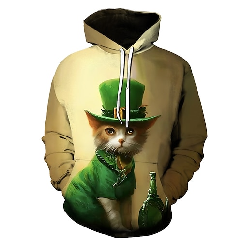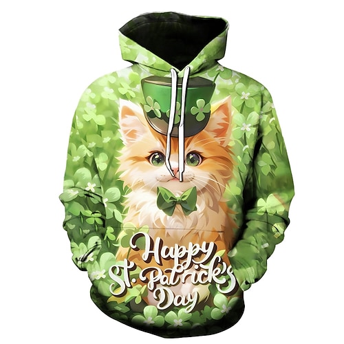 Festa di San Patrizio Gatto Trifoglio irlandesi Felpa con cappuccio 3D Lucky Clover Tasca frontale Grafica Per Da coppia Per uomo Per donna Per adulto giorno di San Patrizio Stampa 3D Feste Casual