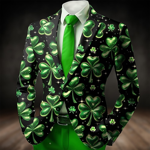 San Patrizio Per uomo Quadrifoglio Giacca blazer Cappotto Confortevole Traspirante Artistico Casual Quotidiano Abbigliamento da sera Festival Stampa 3D Bottoni Multi-tasche Tutte le stagioni