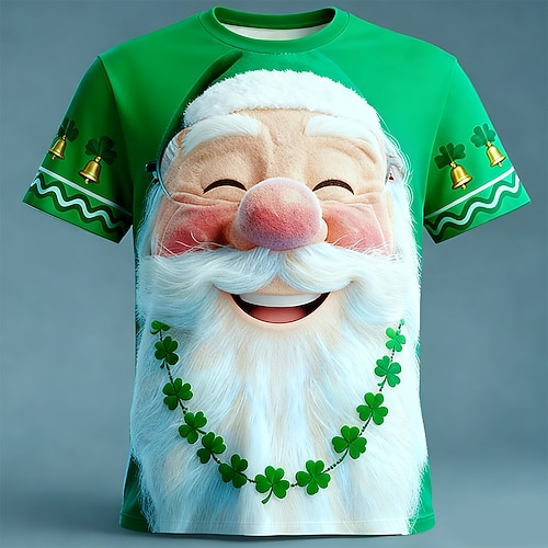 San Patrizio Per uomo Grafico Trifoglio Faccia Sorridente Irlandese fortunato Maglietta Manica Corta maglietta Stampa 3D Girocollo Camicia Quotidiano Designer Casual Sport all'Aperto Ferie Uscire