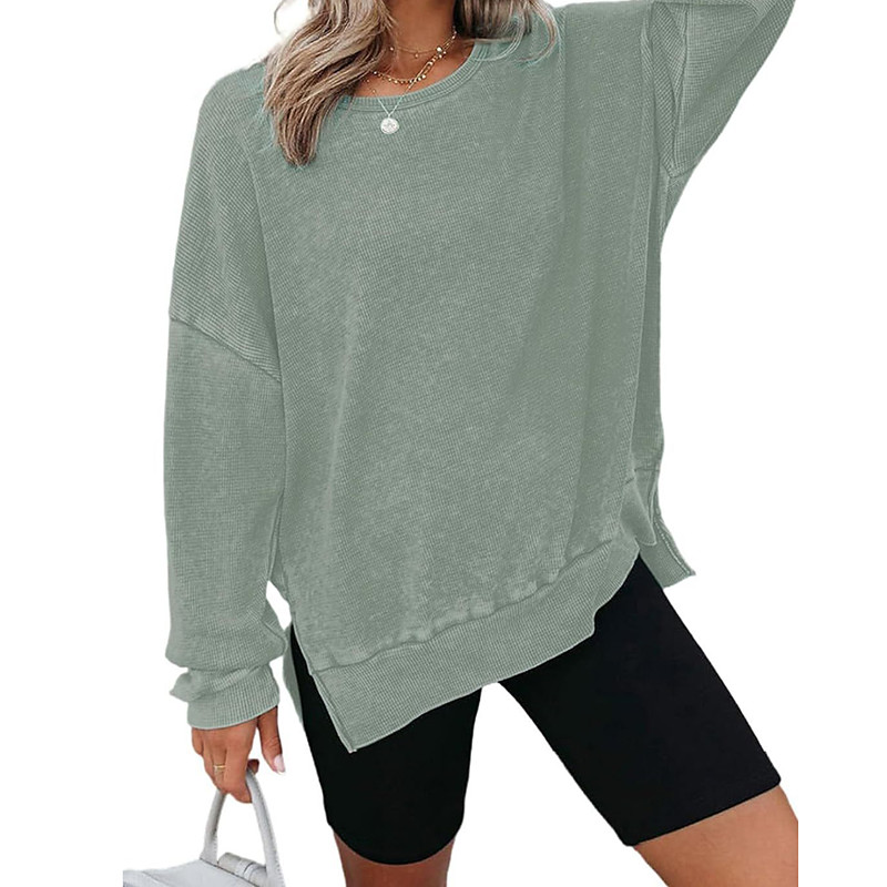 Women's T Shirt Plain Casual Long Sleeve Crew Neck Regular Tops Daily Going out Weekend Asymmetrical Pink Purple Green Khaki Gray Fall