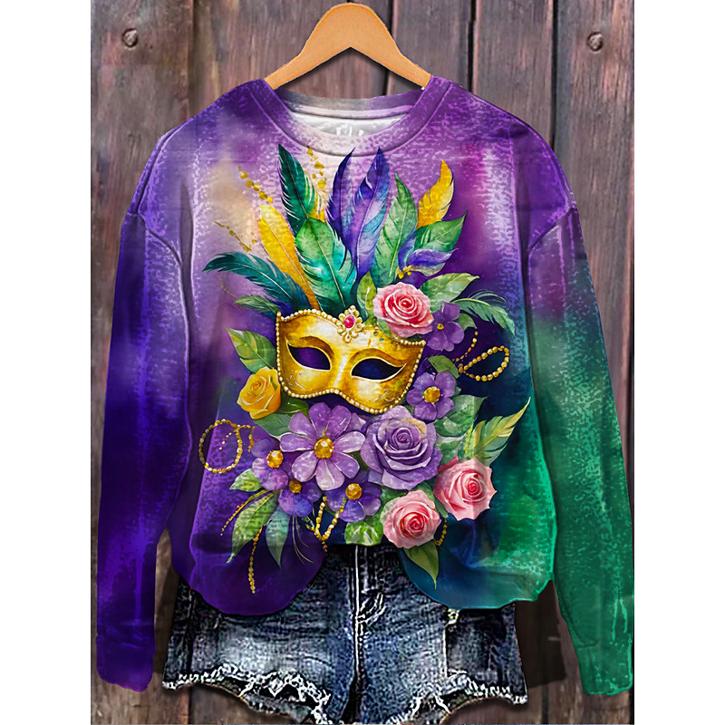 Carnival Women's Pullover Sweatshirt Graphic Geometric Classic Casual Long Sleeve Crew Neck Regular Tops Party Evening Wear Party Outfits Print Purple Green Spring Fall