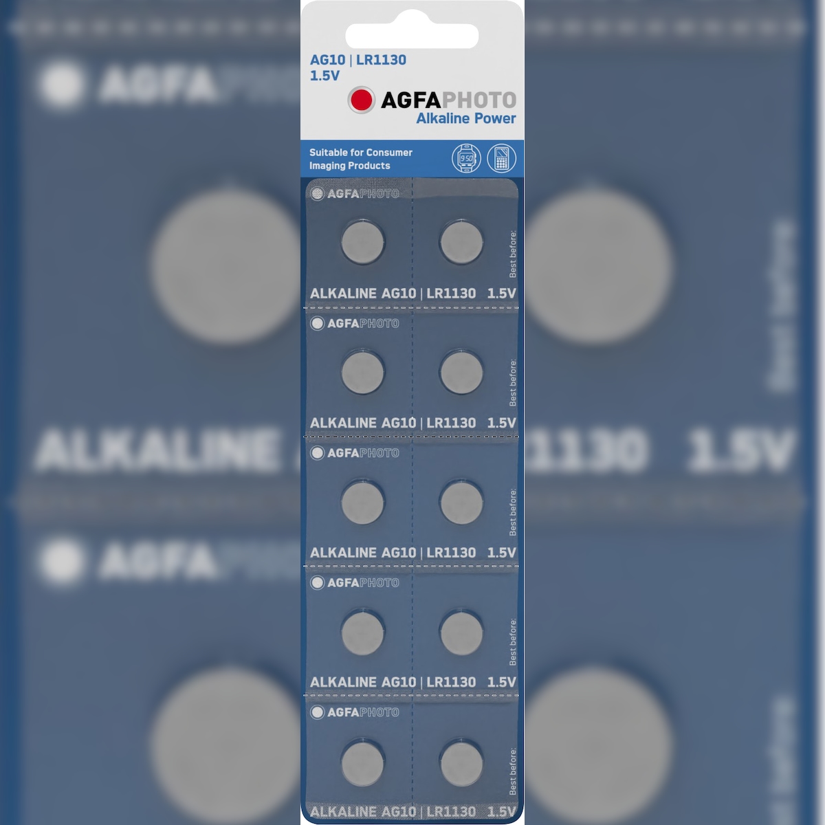 Agfaphoto Batterie Alkaline, Knopfzelle, LR54, V10GA, 1.5V Power, Retail Blister (10-Pack)