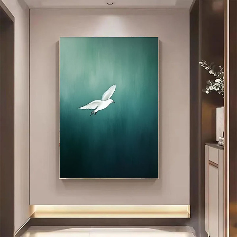 Handmade Surrealism Abstract Painting White Birds Wall Decor Dark Blue And Dark Green Abstract Painting Living Room Set Of 2 Painting