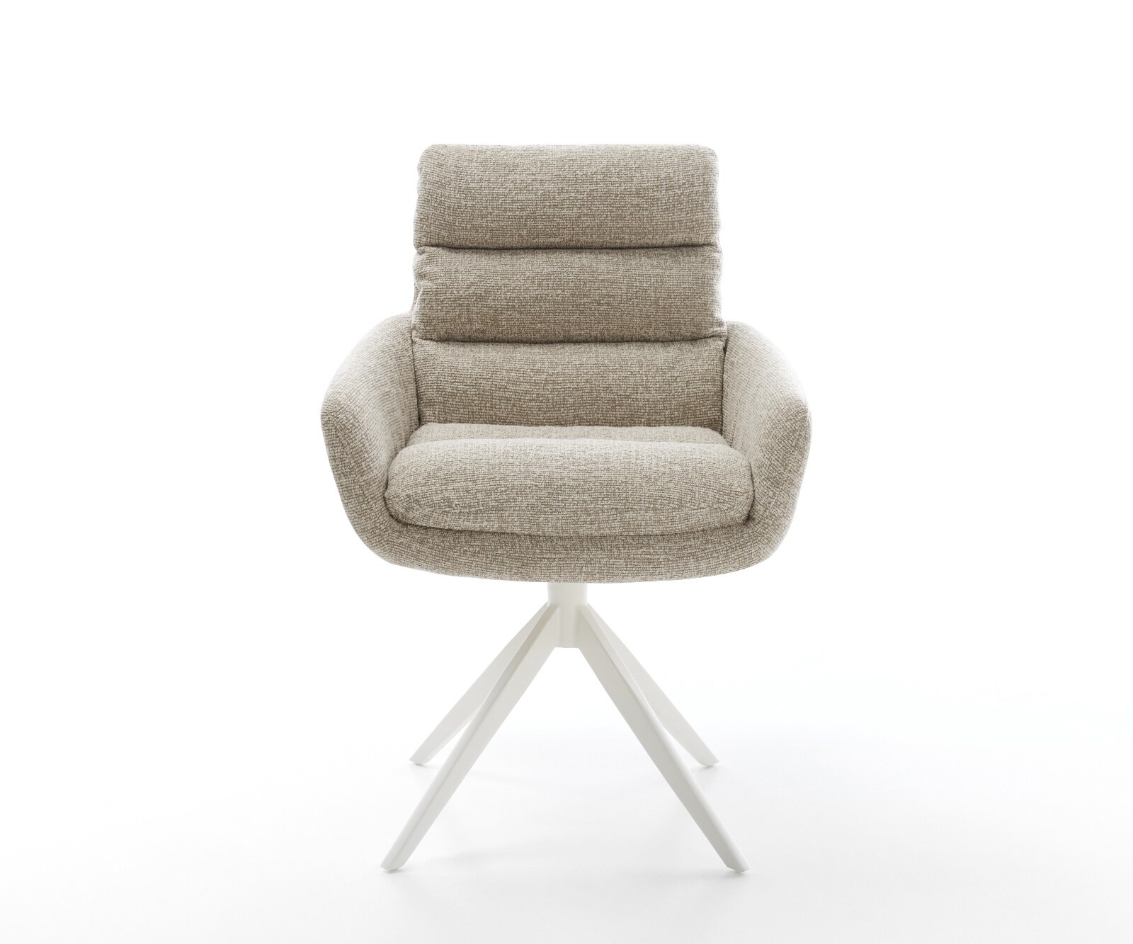DELIFE Draaistoel Abelia-Flex met armleuning geweven stof beige kruisframe breed wit 360° draaibaar rocker-functie