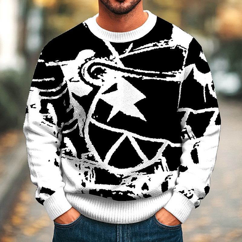 Men's Geometric Pullover Sweater Jumper Knitwear Crewneck Casual Vacation Street Daily 3D Print Knitting Keep Warm Long Sleeve Spring Fall Winter Black A Black B