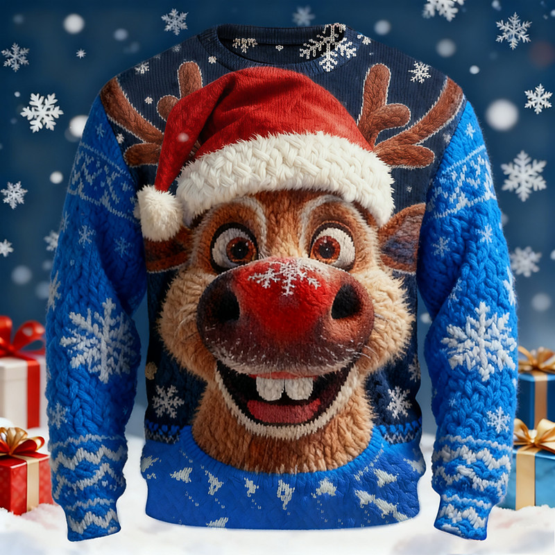 Ugly Christmas Sweater Men's Elk Print Pullover Sweater Jumper Knitwear Crewneck Casual Vacation Daily Keep Warm Long Sleeve Spring Fall Winter Blue Black Red