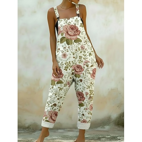 Per donna Salopette Attivo Floreale Senza Maniche Coulisse con tasca Vacanza Streetwear Vestibilità comoda Rosso Blu marino Verde Estate