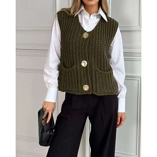 Per donna Felpa Gilet Cardigan Streetwear Casual Tinta unica Scollo a V Bottoni Lavorato a maglia Senza Maniche Top Regolari Maglia Quotidiano Ferie Uscire Giallo Rosa Autunno Inverno