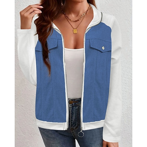 cappotto invernale da donna patchwork tasca con cerniera elegante moda classico moderno tinta unita esterno vacanza casa ufficio / carriera normale turndown vestibilità regolare manica lunga capospalla