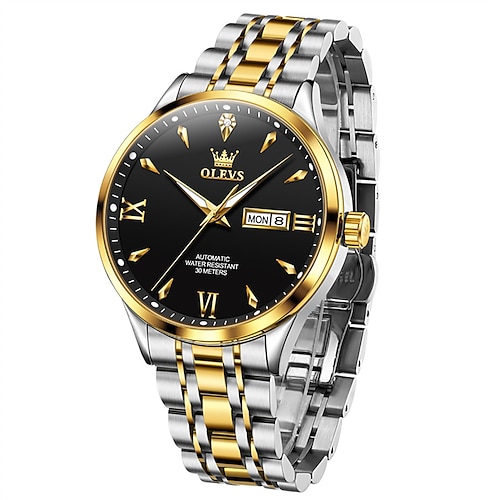 Il nuovo Olevs Orologio da business per uomini con display luminoso del calendario Giornata Orologio meccanico automatico Semplice e casual Doppio calendario Orologio da polso sportivo impermeabile