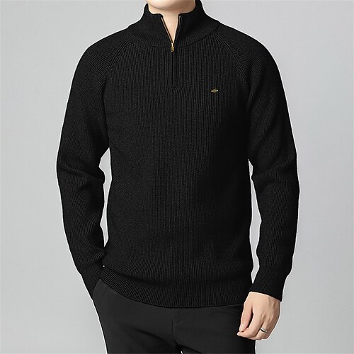 Per uomo Felpa Maglione Maglione con zip a un quarto A Coste Maglia Top Regolari Lavorato a maglia Slim Fit Semplice Collo Alto Maglieria Contemporaneo Casuale Abbigliamento quotidiano Abbigliamento