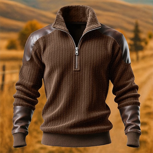 Per uomo Felpa Maglione Maglioni con zip a un quarto Maglione con zip a un quarto A Coste Maglia Top Regolari Lavorato a maglia Slim Fit Semplice Collo Alto Maglieria Contemporaneo Casuale