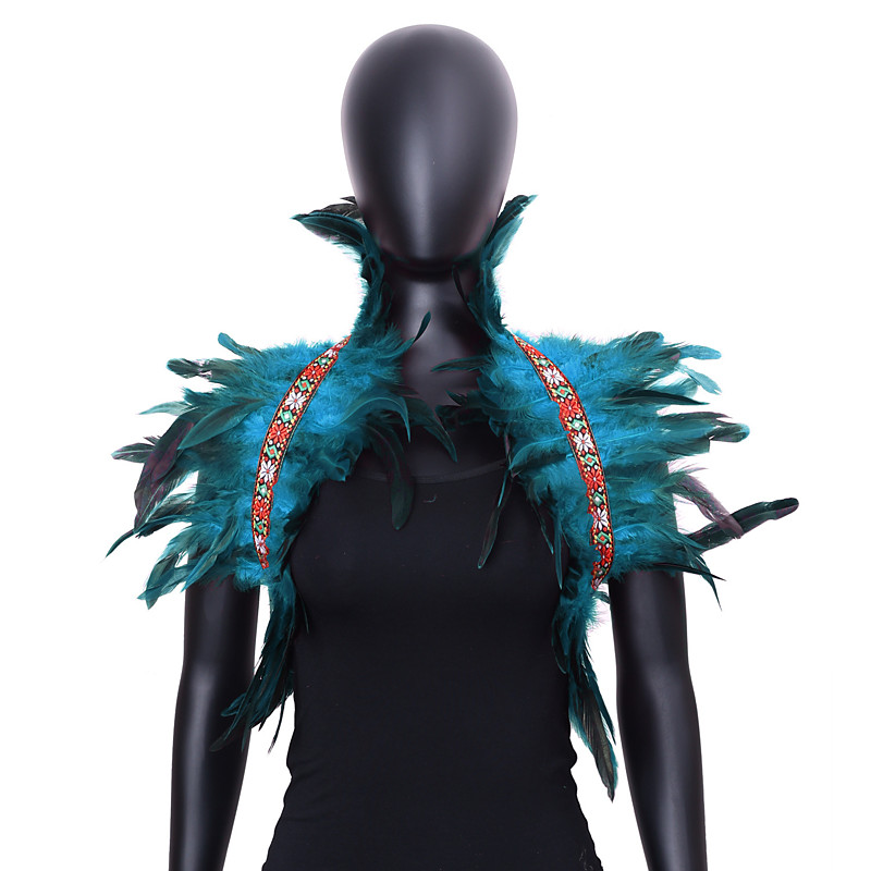 Carnival 2026Rio Carnival Samba Accessories Women's Green Feather Cape Shawl with Embroidered Ribbon Brazil Festival Performance Costume
