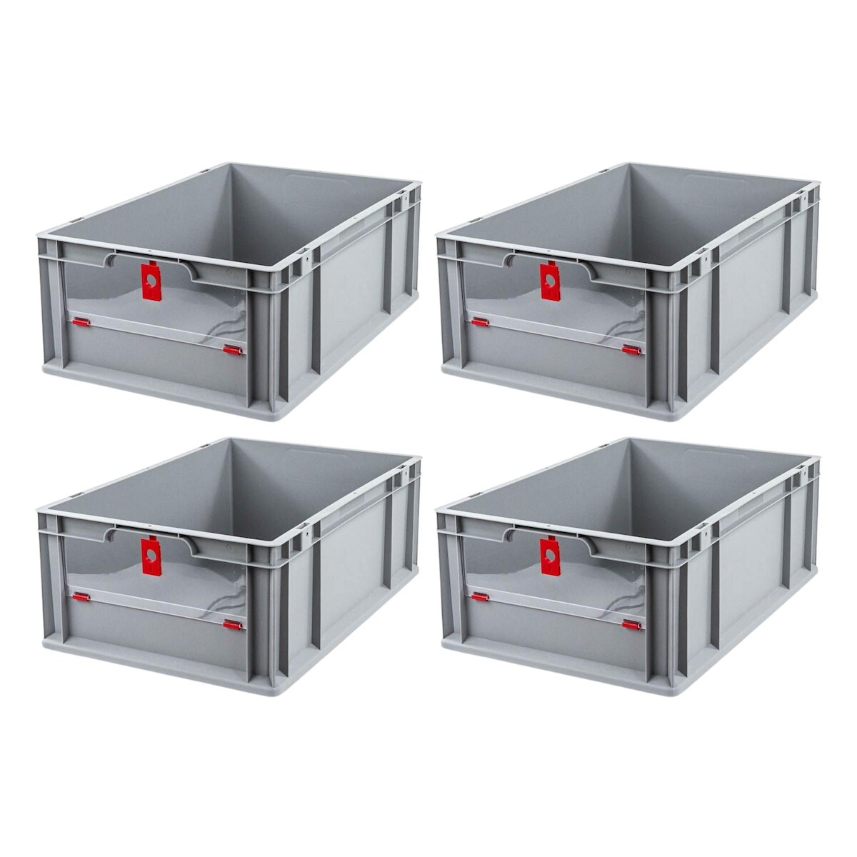 PROREGAL 4x Eurobox NextGen Insight Cover | HxBxT 22x40x60 | 44 Liter | Niedrig/Rot | Eurobehälter, Transportbox, Transportbehälter