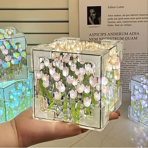 Fiori artificiali fai da te, tulipani, cubo, specchio, scatola, luce notturna, regalo per esposizione floreale per la festa della mamma, compleanni, decorazioni romantiche ambiente domestico, kit di