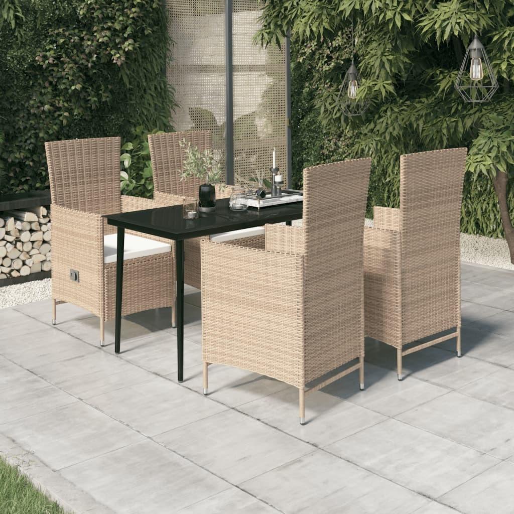 Spisebordssæt til haven 5 dele med hynder beige