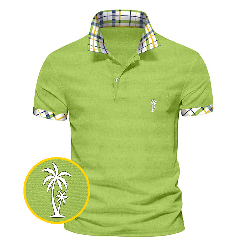 Men's Golf Shirt Pique Polo Shirt Business Casual Ribbed Polo Collar Short Sleeve Fashion Basic Solid Color Plaid Buttons Logo Summer Spring Spring Fall Regular Fit Yellow Navy Blue Green Golf