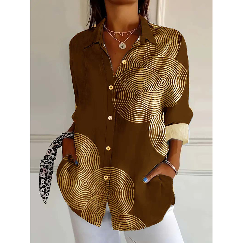 Women's Shirt Blouse Graphic Daily Stylish Retro Vintage Long Sleeve 3/4 Length Sleeve Shirt Collar Regular Tops Daily Holiday Going out Buttons Maroon Black Red Brown Spring Fall Winter Spring