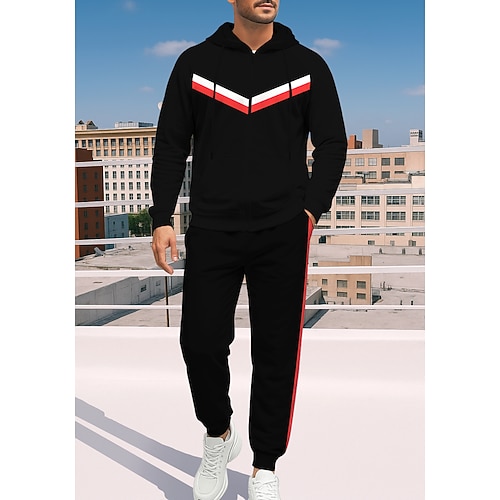Per uomo Felpa con cappuccio Tuta Da Ginnastica Tuta da ginnastica Tute da jogging Nero Bianco Giallo Rosso Grigio Con cappuccio Color Block Collage 2 pezzi Sportivo Giornaliero Sport Essenziale