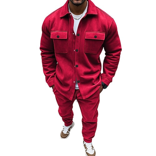 Per uomo Maglia Tuta da Ginnastica Set di abiti Bavero All'aperto Quotidiano Sportivo Coulisse Cardigan con Bottoni Tasca Semplice Nero Rosso Blu marino Poliestere Abbigliamento sportivo Moda