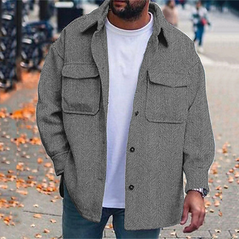 Men's Lightweight Jacket Casual Jacket Work Jacket Casual Daily Pocket Button-Down Spring Fall Plain Herringbone Streetwear Stylish Turndown Regular Blue Black Brown Green Khaki Jacket